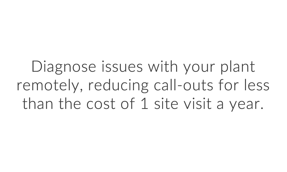 Diagnose issues with your plant remotely, reducing call-outs for less than the cost of 1 site visit a year.